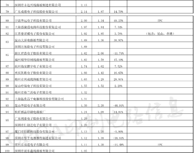 附:CPCA第十七屆(2017)中國電子電路行業排行榜詳細榜單(信息來源:CPCA印制電路信息)