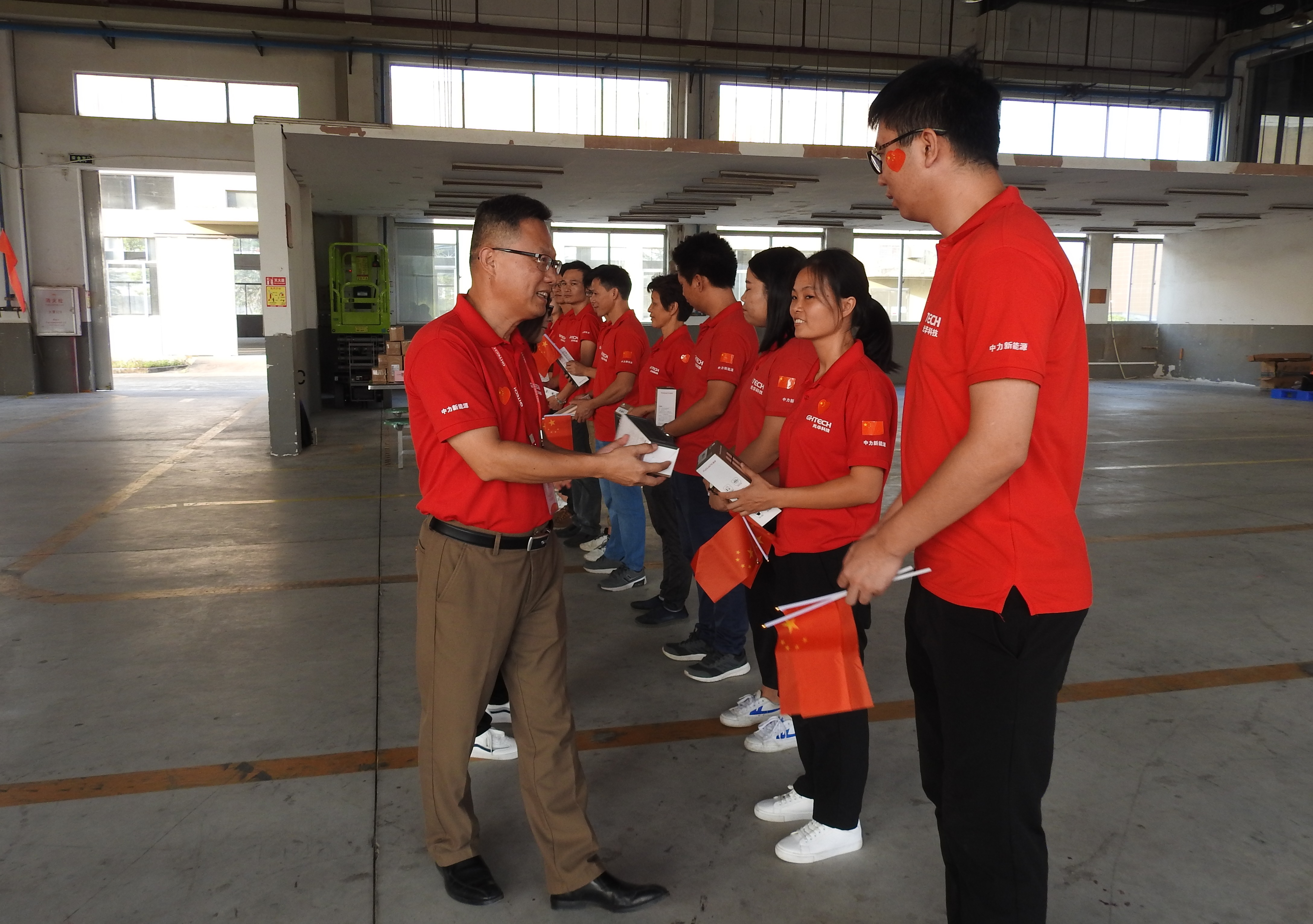 團建活動如火如荼,珠海市富山管委會副主任容立雄先生,光華科技董事、副總裁鄭俠先生親臨活動現場,對光華科技-珠海中力新能源在國慶前夕用自己的方式來慶祝祖國70華誕表示高度贊揚。并與活動現場的所有人員一起進行了莊嚴肅穆的唱國歌儀式。我們所有伙伴都用心吶喊“祖國母親,生日快樂”。